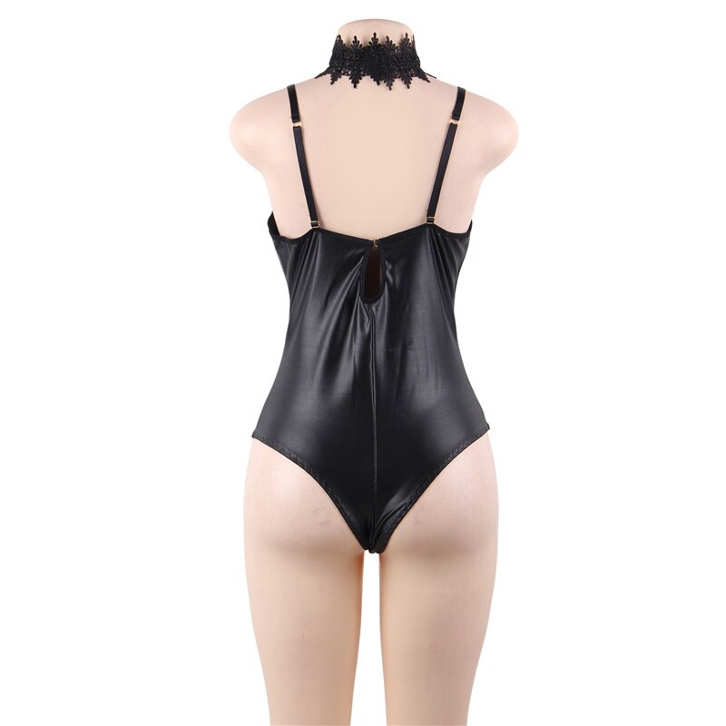 Body noir avec un décolleté ras de cou avec des transparences en dentelle.