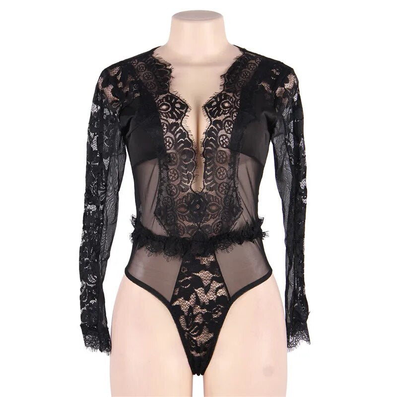 Soyez et sentez-vous mieux avec Body Queen Dee. Ce body à col en V profond est conçu pour le style et le confort. Fabriqué à partir d'un mélange de polyester et d'élasthanne, il est orné d'une subtile décoration en dentelle pour ajouter une touche de style. Parfait pour toute occasion, vous serez prêt à faire une entrée dans le Body Queen Dee.