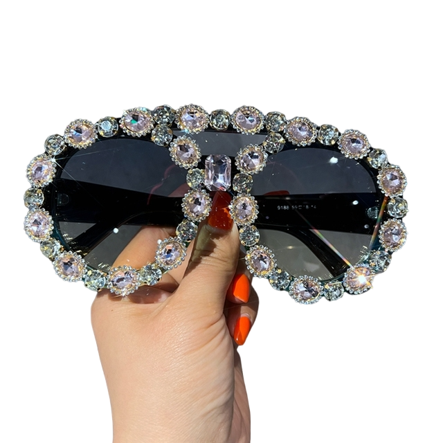 Lunettes de soleil à verres ronds, style vintage, avec la monture ornée de strass.