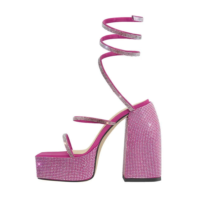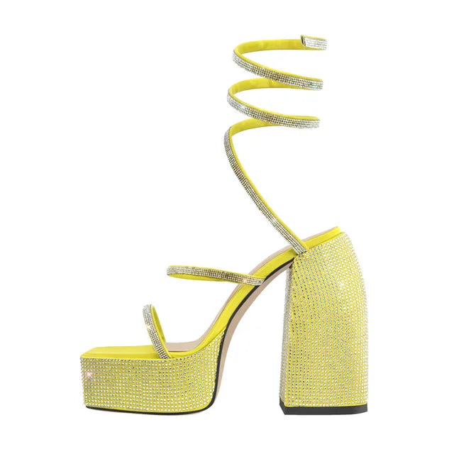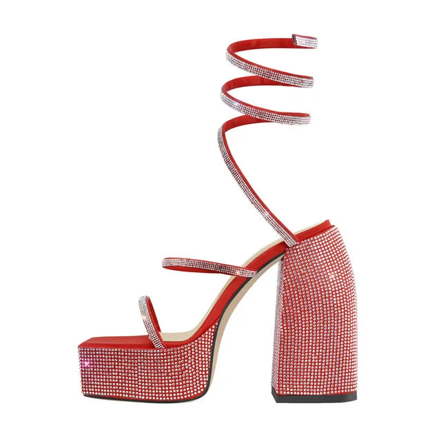 Les Sandales Queen Yilli sont parfaites pour les fêtes d'été et le design en strass fait à la main les rend irrésistibles. Fabriquées avec des matériaux synthétiques PU, elles disposent d'un talon haut et d'une plateforme épaisse pour un look raffiné et confortable. Disponibles avec une fermeture à bride à la cheville, ces sandales sont les préférées des drag queens.